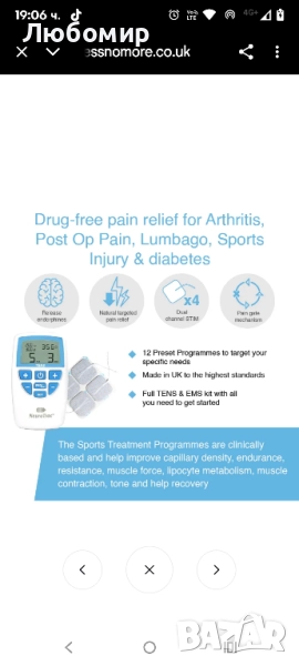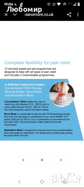Произведена във Великобритания, сертифицирана медицинска TENS машина за безопасно и ефективно облекчаване на болката