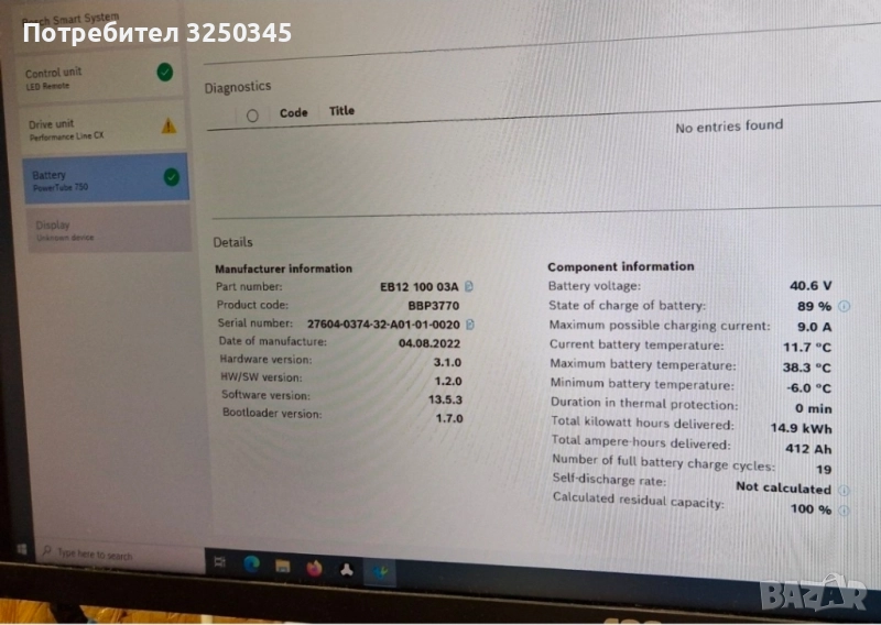Двигател на около 2000км.- заключен от приложението-150лв Батерия Bosch 750 с направен ъбдеит на 19 цикъла-700лв Рамка- L ,алуминиева-350лв 29 инчови гуми - продадени. Вилка sr suntour nvx 29 -90лв Спирачки: предна-50лв Оптегач с превключвателя-продаден Контрллер-продаден Кормило 740мм-40лв без забележки. Седалка с колче - продадена. Капак батерия-90лв Захват батерия -30лв Основа за батерия-20лв. Ключалка abus-без ключ-продадена. Капак двигател-продаден. Бука за зареждане с кабели и основа към букса батерия-50лв Курбели с касета-60лв Магнитен сензор за движение-30лв. И т.н.,за повече питайте.