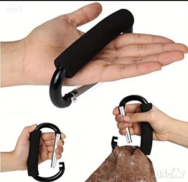 В комплект с голям карабинер, който служи за дръжка и метална голяма халка.