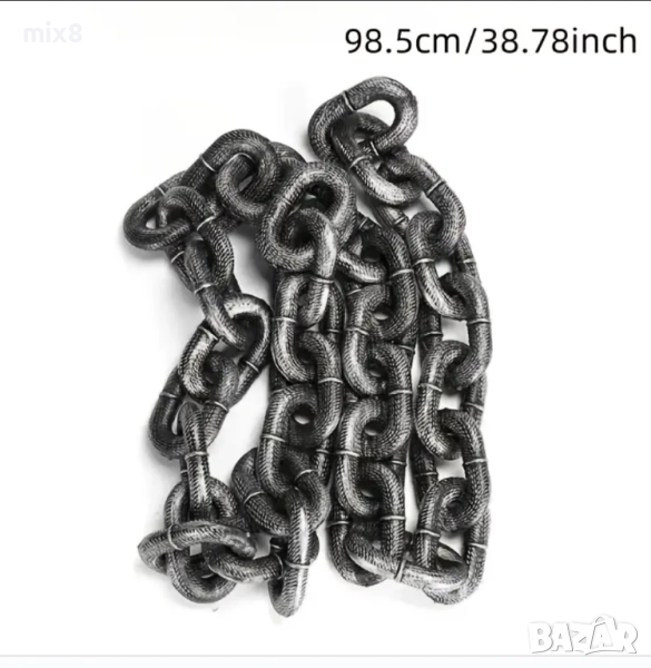 Изглежда като масивна метална верига, но е изработена от здрава и лека пластмаса! Идеална за забавни сцени, декорации или костюми – впечатляваща, безопасна и удобна за носене. Реалистичен вид с хумористичен ефект!