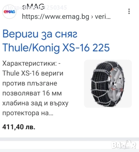 Нови вериги за сняг Thule XS 16. Стават за голям набор от размери изписани на кутията. Цената не се коментира.