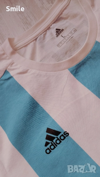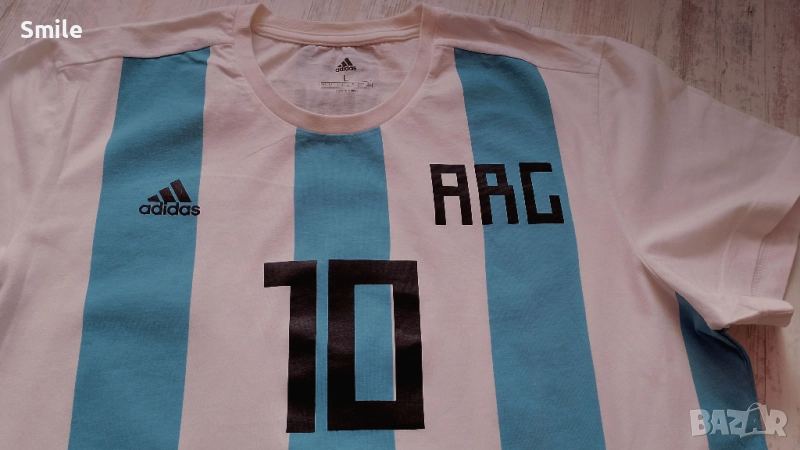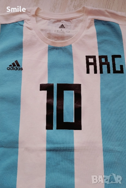 Футболна фланелка на националния отбор на Аржентина / Меси. Оригинал на Adidas. В отлично състояние, без забележки, като нова. Материя 100% памук .Размер L. Размери, измерени от мен: ширина - 58 см., дължина - 75 см. Изпращам с "Еконт" или "Спиди".
