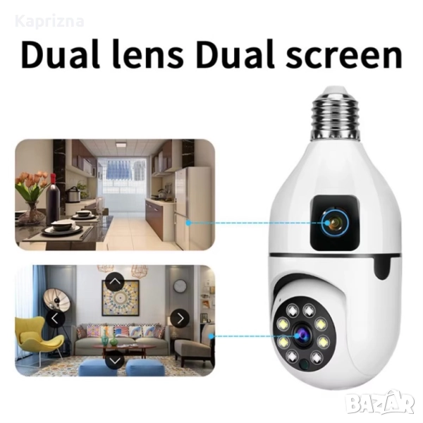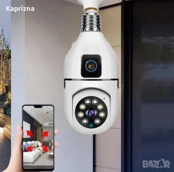 Wi fi безжична въртяща се двойна камера за фасунга крушка