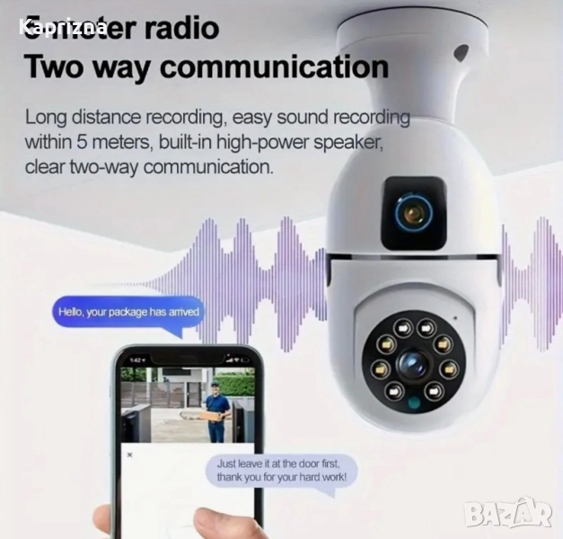 иновативна камера за наблюдение, проектирана да осигури пълна защита и непрекъснат мониторинг във вашия дом. С модерен дизайн на крушка, съчетава функционалност с естетика, като е подходяща за използване в различни среди, като къщи, ферми или други пространства.