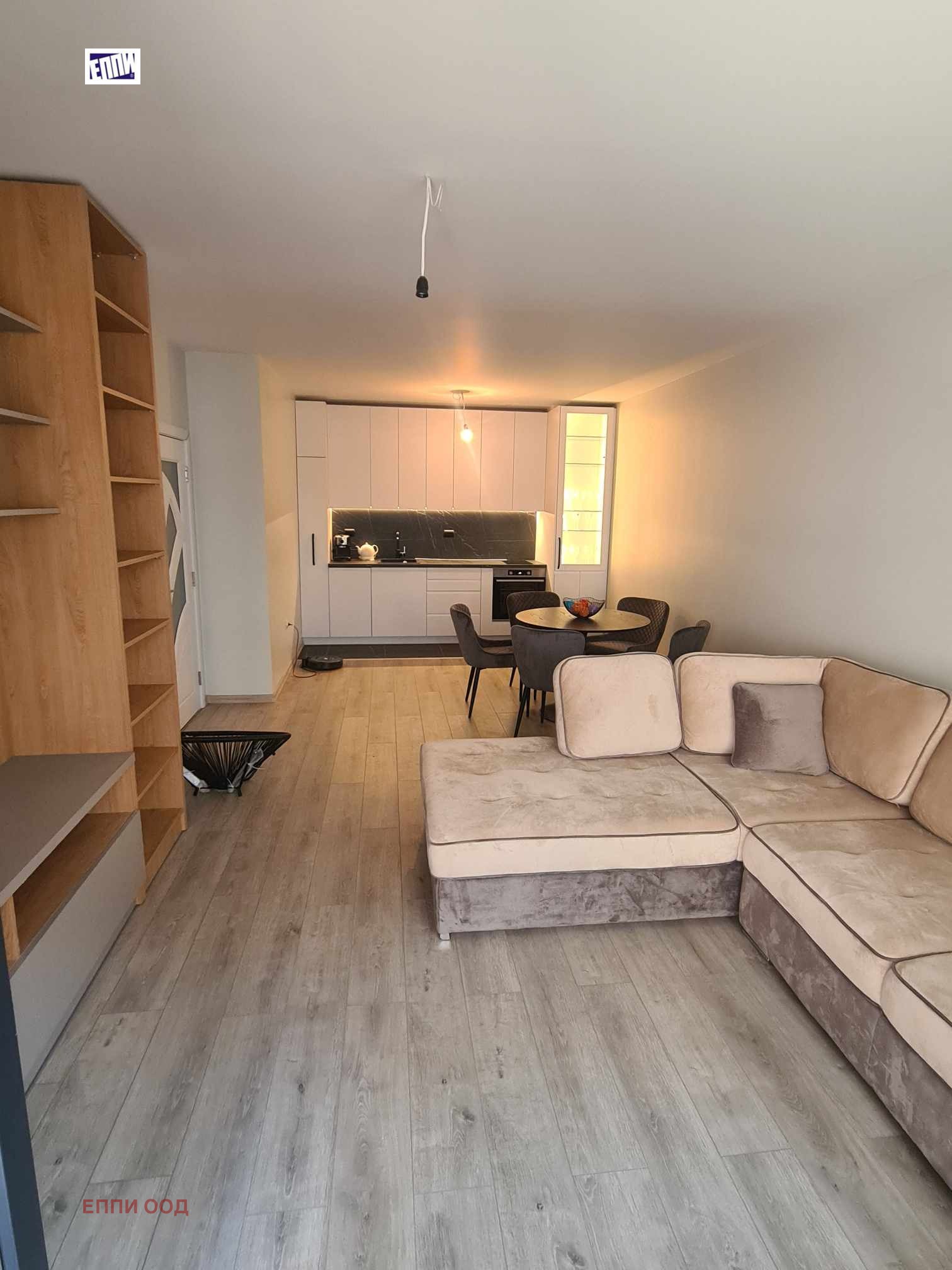 Прекрасен апартамент в нова тухлена кооперация с разрешение за ползване от юни 2023 година. Жилището се продава от физическо лице, завършено и обзаведено с много вкус, подходящо и за инвестиция, отоплението е на газ, индивидуално котле за апартамента, има и климатик, сградата е с перфектни общи части. Разпределение: антре, дневна - столова с кухненски бокс, една спалня, баня - тоалетна, склад - мокро помещение и вътрешен балкон - лоджия. Застроената площ по документи е 69 кв. м, има мазе с полезна площ около 4 кв. м.