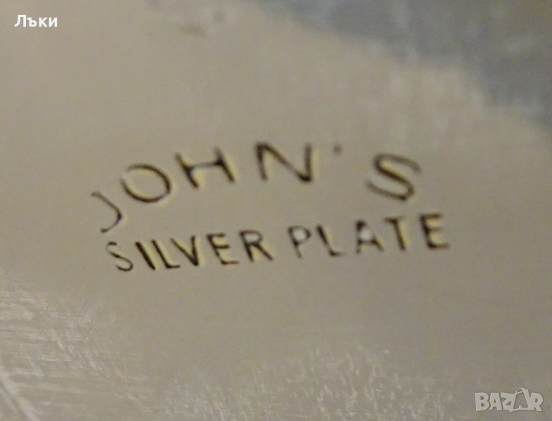 с висока проба сребро,маркиран JOHN'S silver Plate.В центъра е богато декориран с релефно гравирани