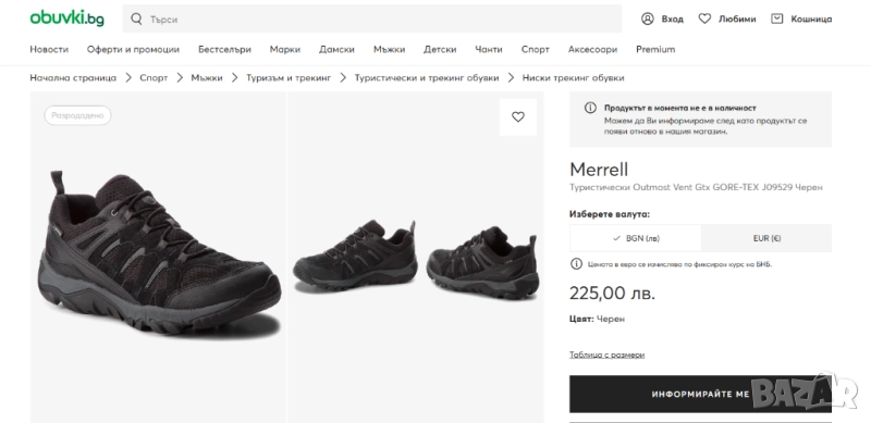 MERRELL OUTMOST VENT GTX Gore-Tex номер 43 обувки/маратонки
