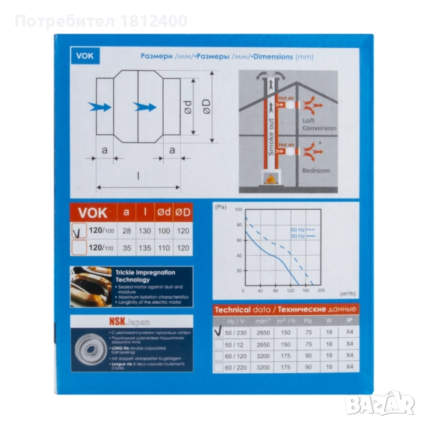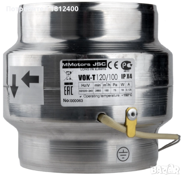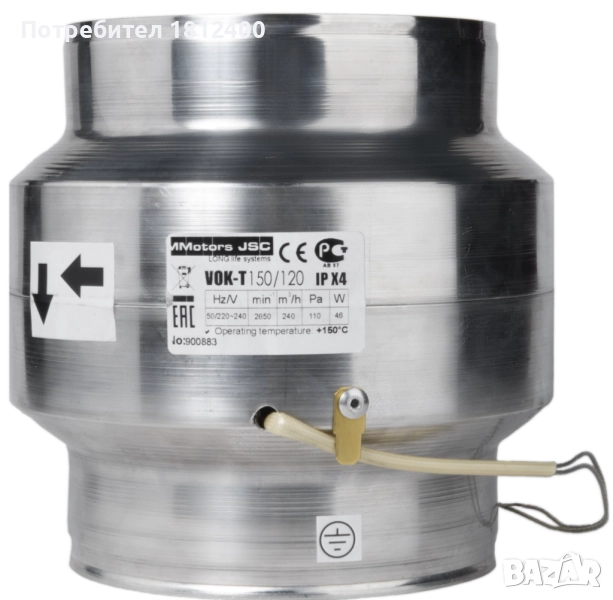 Канален вентилатор ВОК 120/100: 150 куб/м на час.