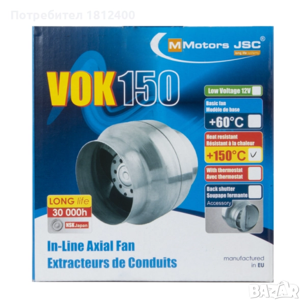 Канален вентилатор ВОК 150/120: 150.45 лв.