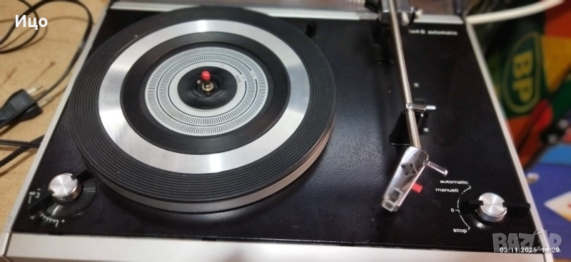 Истински запазен винтидж грамофон от 1974 г.Германия.Отличен външен вид,и работа.Пълен автомат.Оригинално рамо,Шел,доза и игла.Тест на място.Лично предаване,по куриер е изключение.