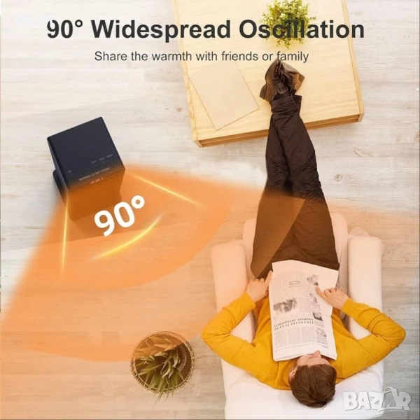 Електрическа 2000W, ECO вентилаторна печка, 90° осцилация, таймер, LED дисплей, термостат, дистанционно, 4 режима.