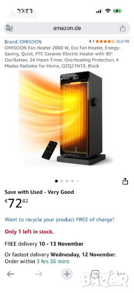 Цената на която се предлага в Amazon е 73 евро