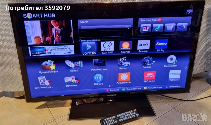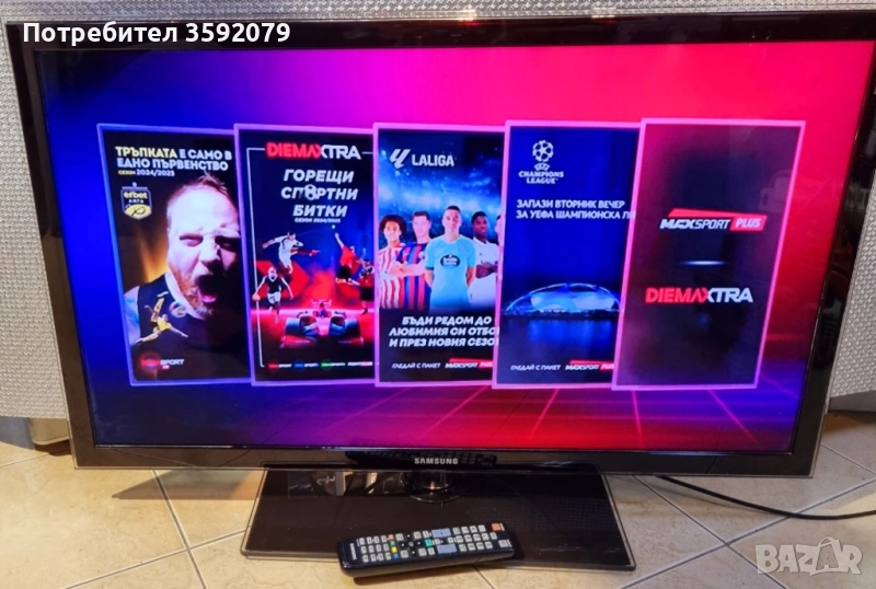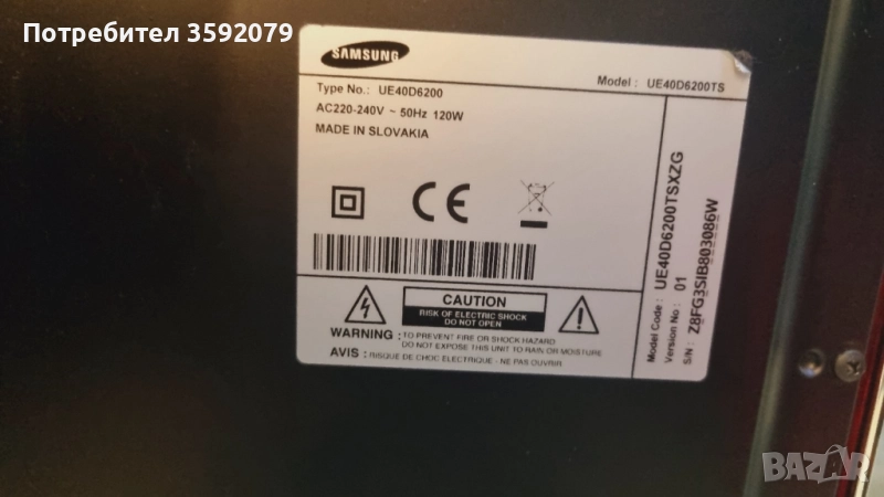 Телевизор Samsung UE40D6200 – 40" Full HD LED Smart TV Продавам телевизор Samsung UE40D6200 в отлично състояние. Моделът предлага ясна и наситена картина (Full HD 1080p), LED подсветка и елегантен тънък дизайн. Поддържа 3D функция, Smart TV възможности и разполага с множество входове за свързване на устройства. Характеристики: Екран: 40" / 101 см Резолюция: Full HD (1920×1080) Подсветка: LED Smart TV и 3D поддръжка Тунери: DVB-T / C / S2 Входове: 4×HDMI, 3×USB, LAN, компонентен/композитен вход Възможност за възпроизвеждане на филми, музика и снимки от USB Телевизорът работи перфектно – без дефекти по екрана или корпуса.