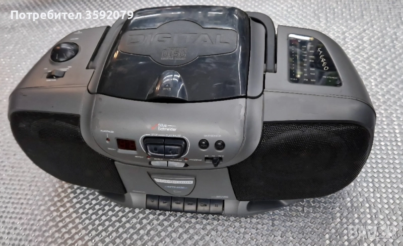 Продавам касетофон/CD/радио Silvia Schneider PCD627 в много добро състояние. Устройството разполага с касетъчен плеър, FM/AM радио и вградени високоговорители. Подходящ е за слушане на музика, аудиокниги или за колекционери на ретро техника.