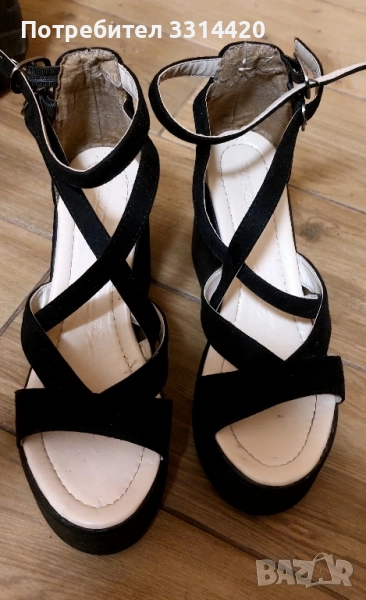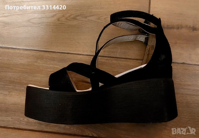 Комфортни и атрактивни сандали на платформа, с мека стелка от изкуствена кожа. Подходящи за средно до широко ходило. Носени са два или три пъти до работа. На практика са нови.