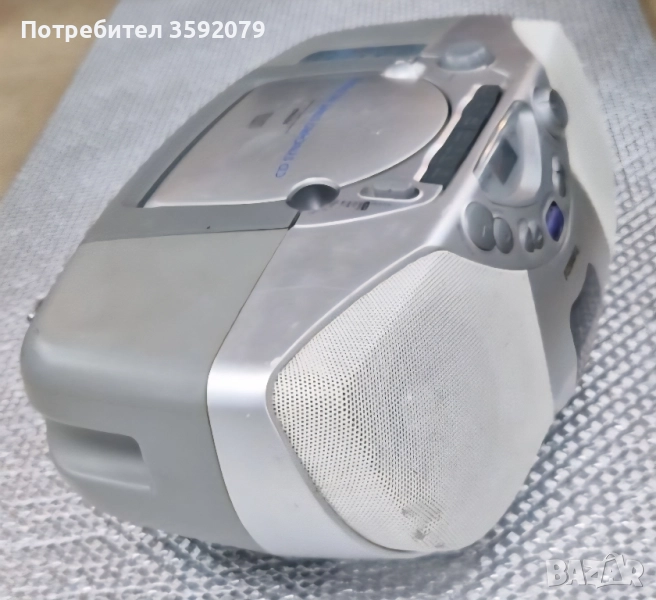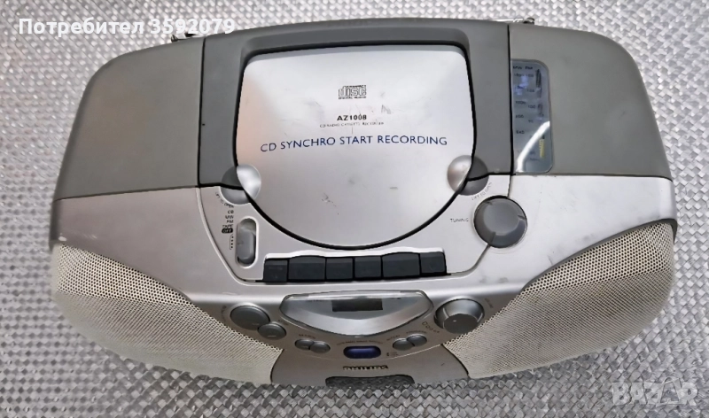 Касетофон Philips AZ1008 Многофункционален аудио уред: радио (AM/FM), касета и CD плейър. Възможност за работа както на мрежово захранване, така и на батерии – идеален за преносимост. Вграден касетен рекордер – може да записвате от радио или CD. Високоговорители с добър звук за малки помещения. Динамичен бас (DBB) за по‑плътен звук. Телескопична