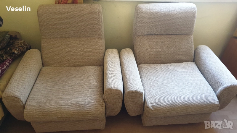 Продавам претапицирана, холна гарнитура в отлично функционално състояние. Състои се от разтегателно канапе с функция сън, два фотьойла и две табуретки. В момента се намира в с. Куртово Конаре