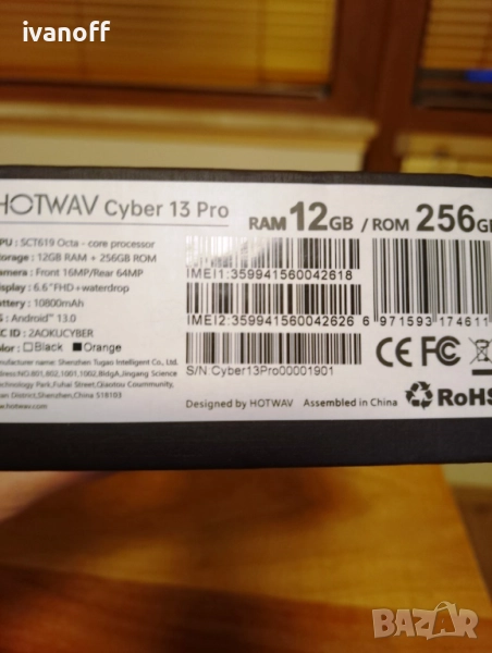 Cyber 13 Pro HOTWAV водо и удароустойчив телефон, 8 ядрен, 256GB, 20GB, 10800mAh : запазен телефон
