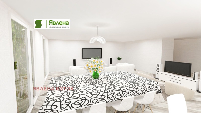 'Явлена - Изток' ООД предлага на Вашето внимание в сграда с АКТ 16 на ТОП локация един прекрасен тристаен апартамент в предпочитания квартал 'Изток' на ул. 'Атанас Далчев'. Апартаментът е с обща площ 215 кв. м. като застроена площ е 180 кв. м. Жилището е много просторно и се състои от антре, светла голяма дневна с трапезария 42 кв.м. и с 17 кв.м. кухненски бокс, две спални със ЗП 16 кв.м. и 21 кв.м. с два отделни дрешника, кабинет 9 кв.м., две бани с тоалетни, трета тоалетна, склад и коридор. Има опция за преустройство на апартамента и да се обособи трета и четвърта спалня. Към жилището има още едно складово помещение 9 кв.м. и 30.70 кв. м. (3,30%) идеални части от УПИ. Апартаментът е светъл с изложение Северозапад и Югоизток. Намира на втори жилищен етаж от общо седем жилищни етажа. Сградата има луксозно изпълнение на общите части, асансьор Schindler, ТЕЦ, чилър система, вътрешни и външни каменни фасади и облицовки, гранитогрес, отлична топло и хидроизолация. Апартаментите са с индивидуални партиди на ток, ТЕЦ, имат алуминиева дограма Schuco, входни врати Dierre и командно табло за външните пана с каменни щори, които се движат в различни посоки.