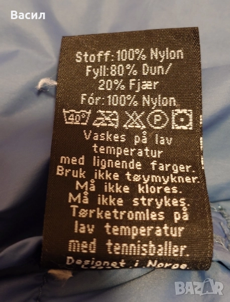 Продавам светлосиньо мъжко яке, размер М с естествен пълнеж от 80% гъши пух и 20% пера.