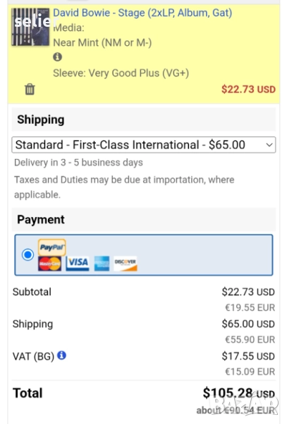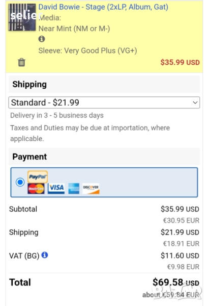 Състояние на обложката:VG+