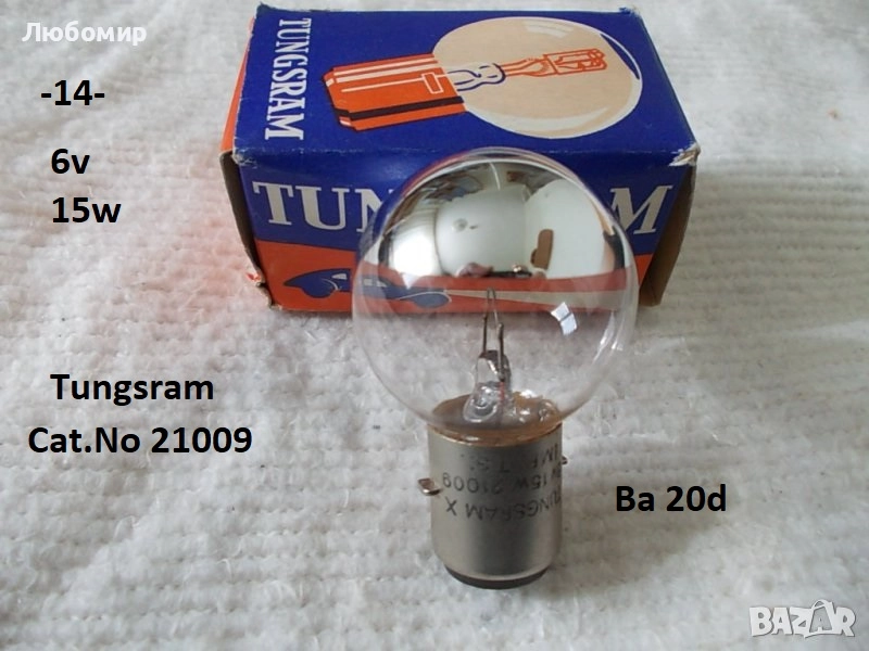 14. 6v 15w Ba20d Tungsram Cat.No 21009 - неизползвано - 1 бр. х 20 лв.