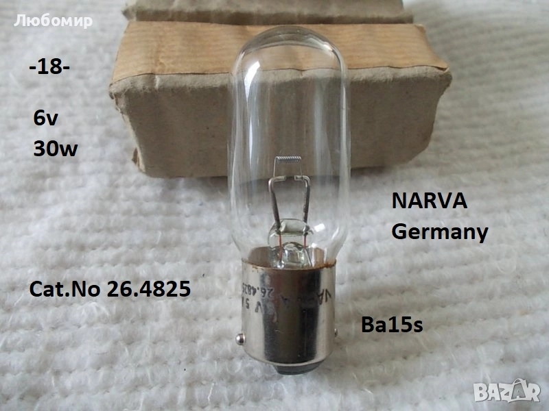 18. 6v 30w Ba15s NARVA Cat.No 26.4825 - неизползвано - 4 бр. х 15 лв.