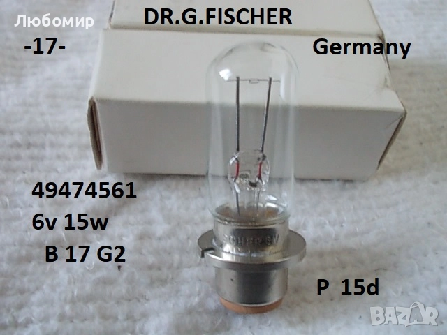 17. 6v 15w P15d DR.G.FISCHER - неизползвано - 2 бр. х 30 лв.