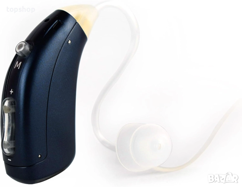 слухов апарат Dishan Rechargeable Best Amplifire за възрастни глухи хора с автоматично шумопотискане A-318 с продължително натискане на бутона за захранване BTE (тъмносин
