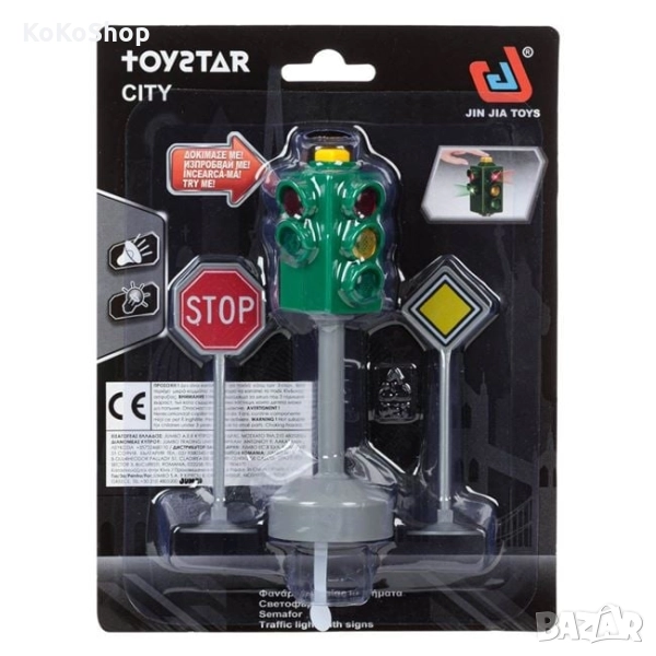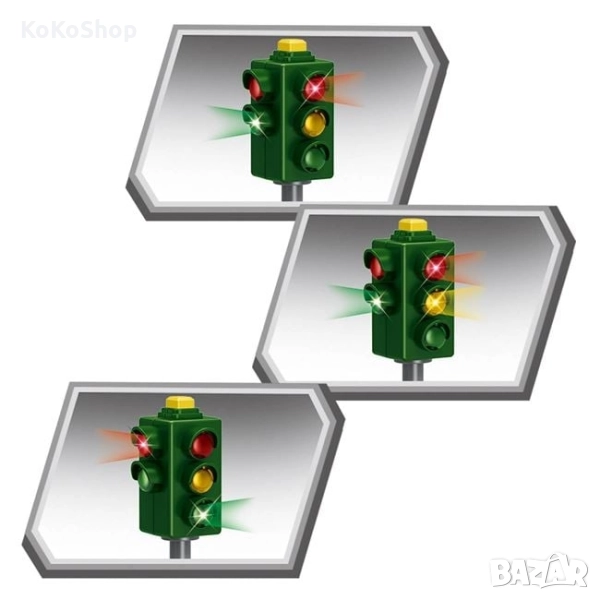 Светофар за игра в зелен цвят с пътни знаци. Подходящ за деца за игра на улица или в детската стая. Играта помага за развитието на наблюдателността на децата.