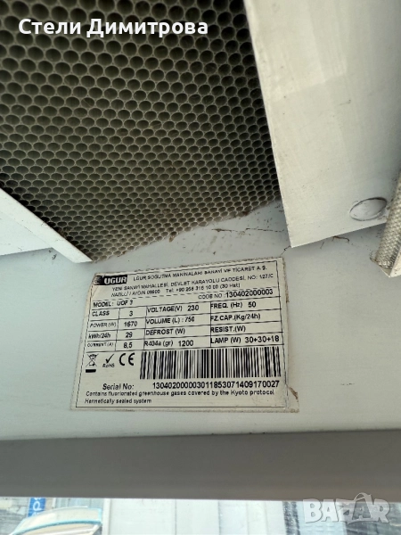 Температура на работа от 2до8 градуса,марка UGUR - ТУРЦИЯ,ЦЕНАТА Е С ДДС И ФАКТУРА,с лед осветление,вентилатори,на последната снимка е стикера с характеристиките за консумацията на ток.