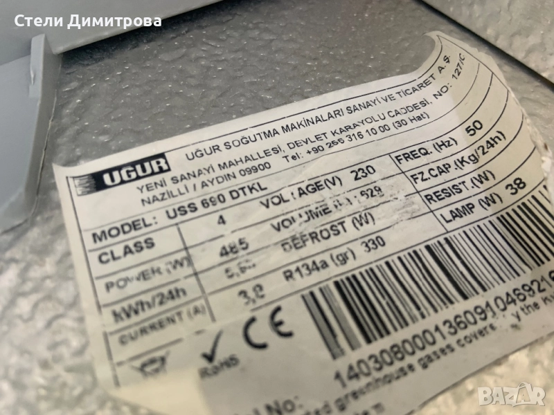 Хладилна витрина,втора употреба,технически изправна,запазен външен вид,работеща,с гаранция 6 месеца,с лед осветление,вентилатор,произведена в Турция,марка UGUR , обем 577литра,температура на работа от 2 до 6 градуса,обявената цена е с ДДС и възможност за фактура,налични бройки на склад,отстъпки при купуване на по-голямо количество.