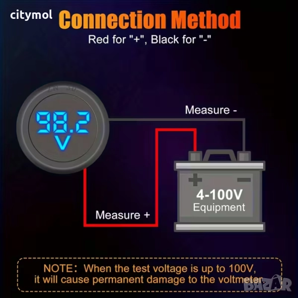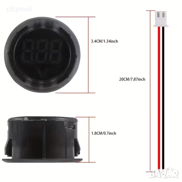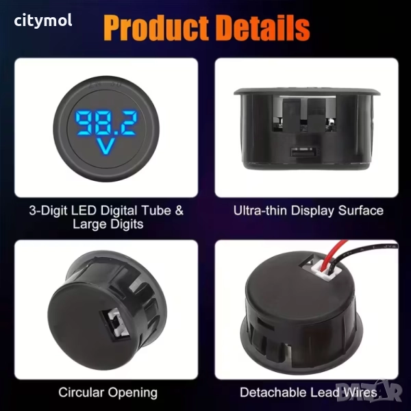 Този цифров волтметър е идеален за измерване на напрежение в диапазона от 4V-100V DC, включващ ясен и лесен за четене зелен кръгъл LED дисплей.