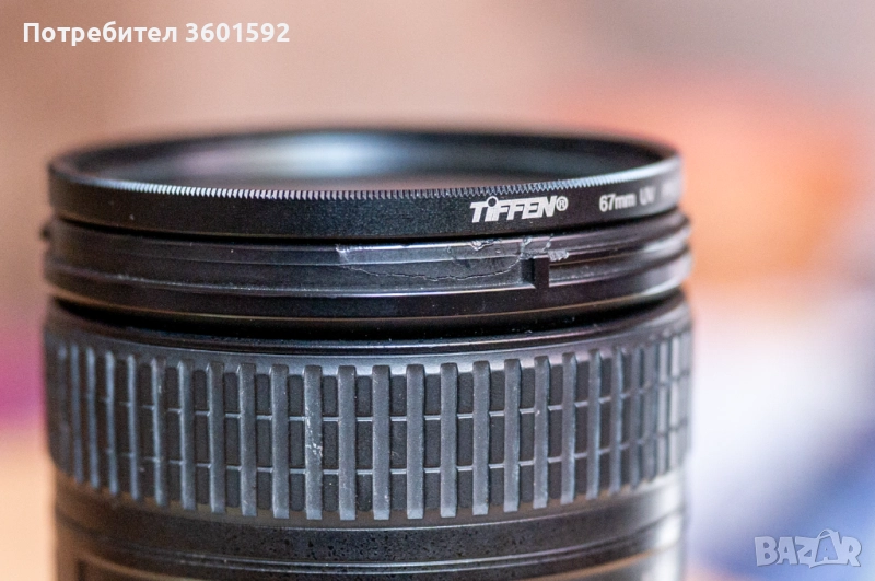 Към обектива е включен UV филтър Tiffen 67mm.