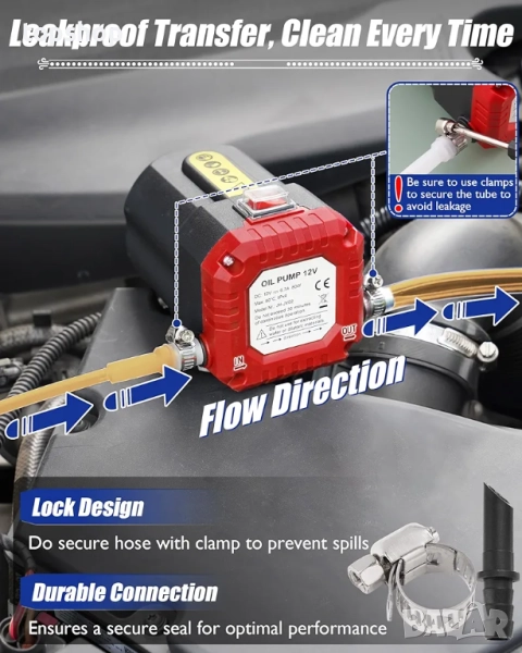 Без течове, без разливания: Не забравяйте да затегнете скобите против течове на маркуча, за да държите маслото сигурно по време на употреба - безопасно, подредено и без стрес!
