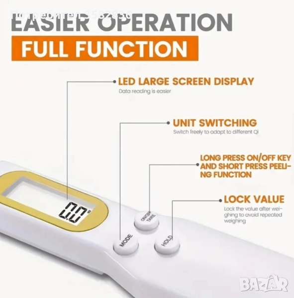Цифрова кухненска везна с лъжица и LCD дисплей Kolzp – прецизно измерване на съставки