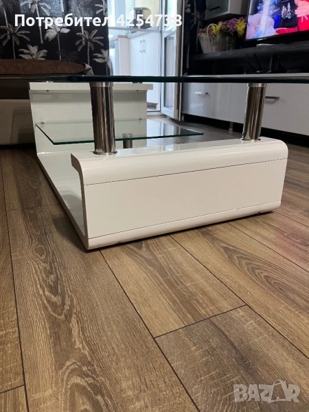 Масата е в употреба от около година. На стъклото има предпазно фолио. Отлично състояние.