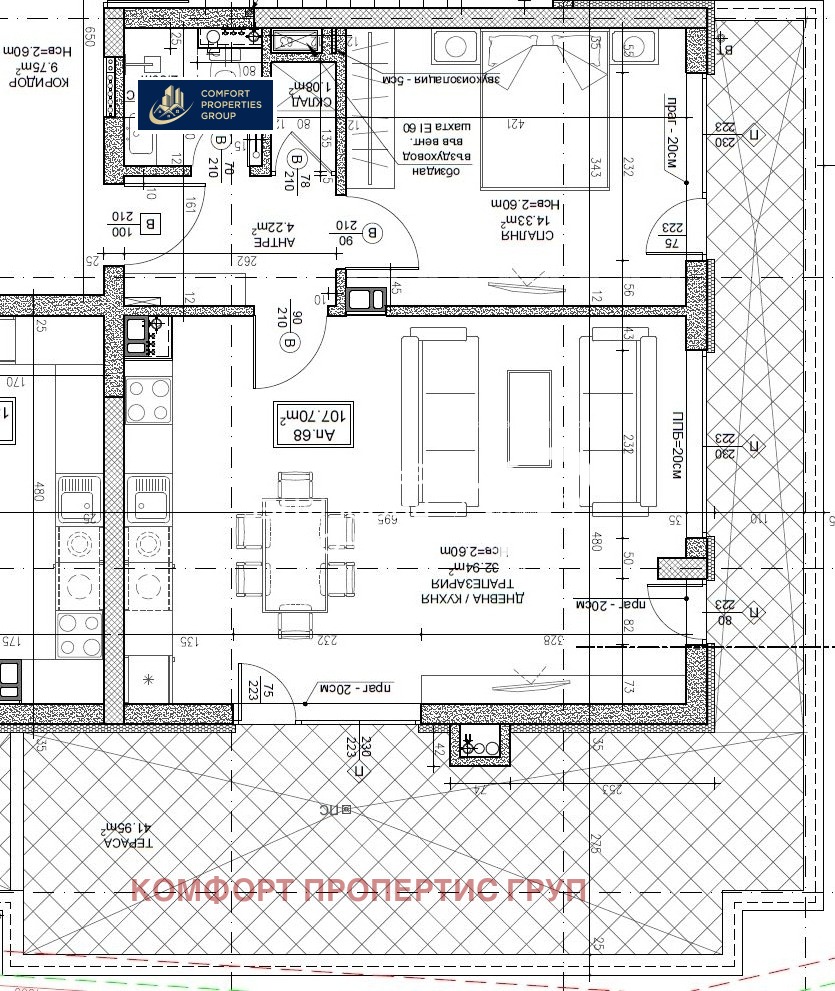 Comfort Properties Group има удоволствието да Ви представи Двустаен Апартамент с голяма тераса в нова сграда с Акт 16 в кв. Дружба-2.