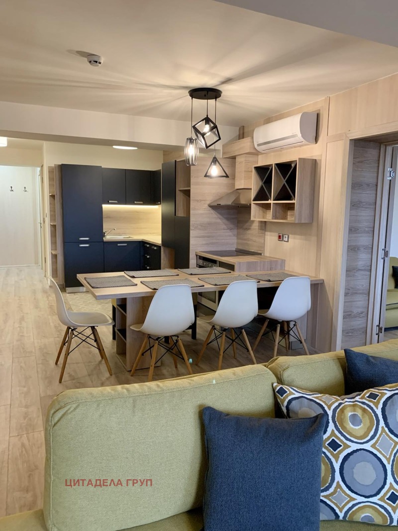 Разпределение: Просторен хол с трапезария и кухненски бокс, тоалетна за гости, спалня 1 разполага със собствена гардеробна и баня с тоалетна, спалня 2 разполага със собствена баня с тоаелтна, и тераса.