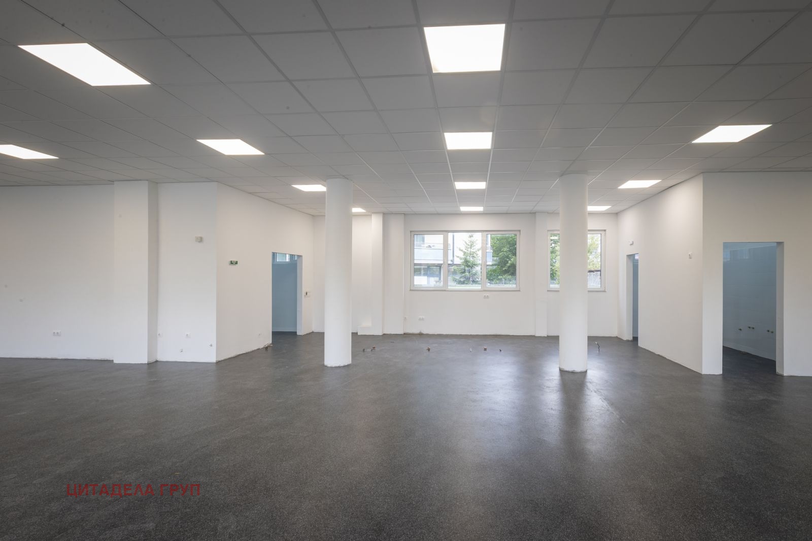 ✅(Партер): Състои се от голямо търговско помещение, четири работни помещения и складове, два санитарни възела,. Довършителните работи са винилова настилка по под, латекс по стени и окачен таван.