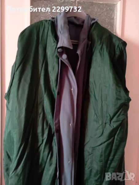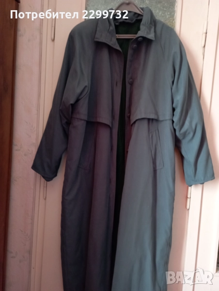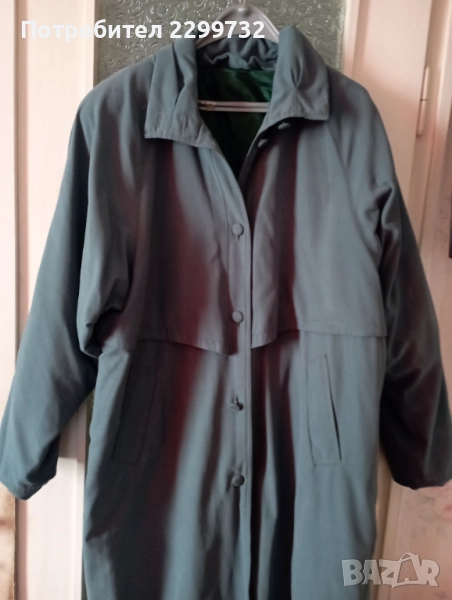 Дамски шлифер № 54 – маслено зелен; дълъг. Има дебела сваляща се подплата и колан. Дължина – 125 см; разстояние от мишница до мишница – 68 см.