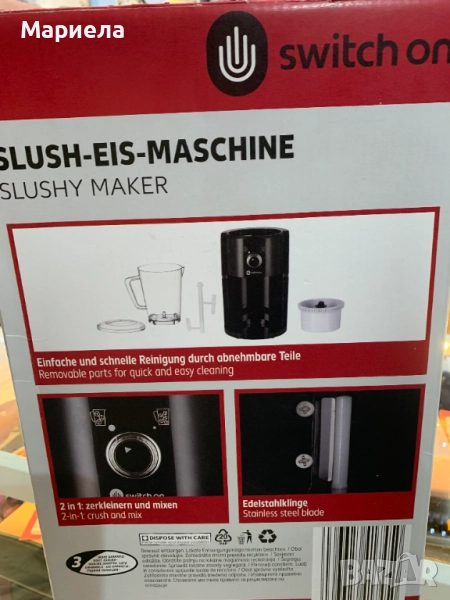 Капакът , смесителният съд , камерата за лед , заключващия механизъм на камерата за лед и бъркалката са подходящи за измиване в съдомиялна машина .