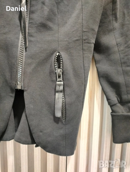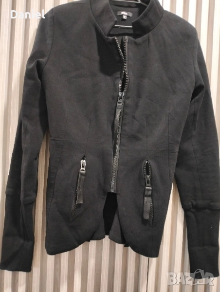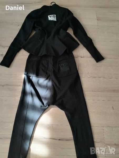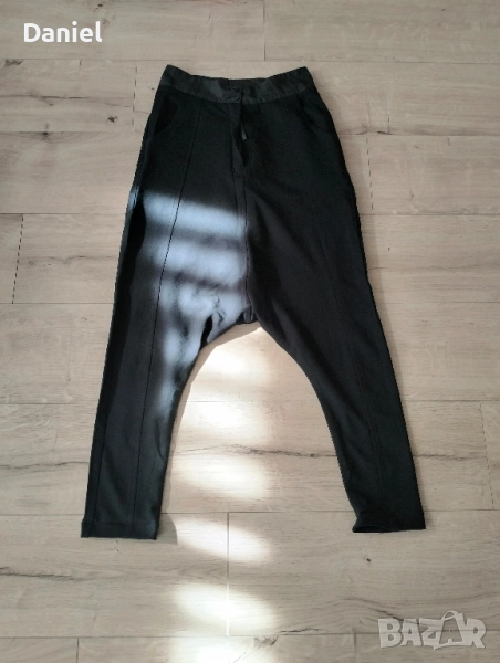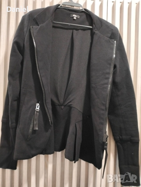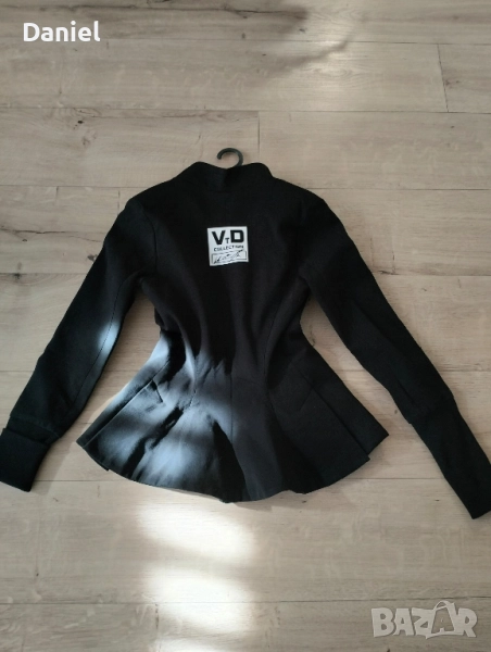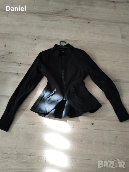 Дамско пеплум сако от стегнато трико, подчертана талия, закопчаване с цип, в съчетание с практичен бой френд панталон с паднало дъно, лека материя и удобен за дами, които обичат такъв тип дрехи. Панталон М р-р, сако S р-р, българско качество, без следи от употреба... Артикулите се предлагат и по отделно...
