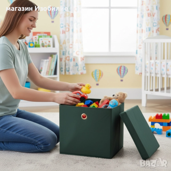 Ако у дома липсва място и всичко изглежда разхвърляно, тази сгъваема текстилна кутия с капак е твоето решение! Идеална за дрехи, играчки, спално бельо и аксесоари – поддържа реда и защитава съдържанието от прах. Изработена от здрав плат с твърди стени, има метален ринг за лесно изтегляне и сгъваем дизайн, когато не се използва. Размерите ѝ 30×30×30 см я правят универсална за гардероб, рафт или етажерка. Елегантният тъмнозелен цвят придава стил и подреденост на всяко пространство.