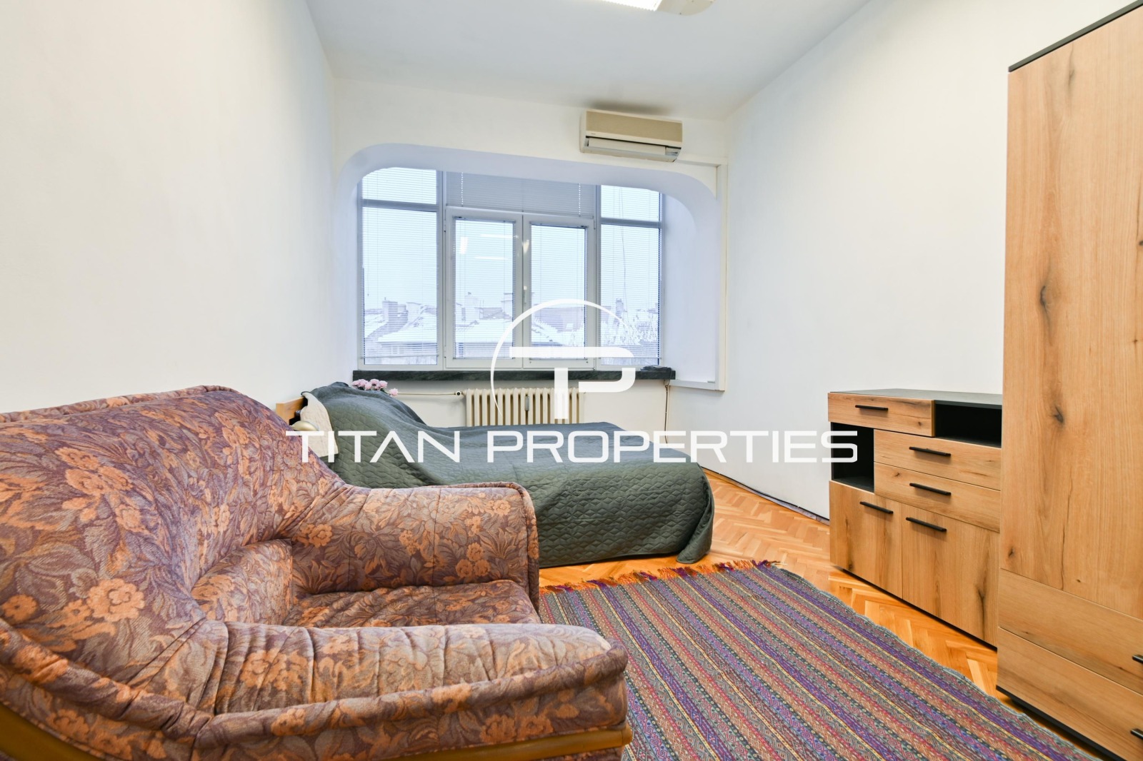 Титан Пропъртис - офис Младост с радост предлага на Вашето внимание двустаен апартамент под наем в кв. Център - НДК, София. Жилището с площ 78 кв.м е разположено на 4-и етаж в тухлена шестетажна сграда. Източното изложение. Разпределението включва входно антре, хол, кухня, спалня, баня с тоалетна и тераса. Апартаментът е напълно обзаведен, отоплява се на ТЕЦ и разполага с климатик.