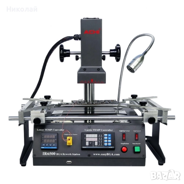 ACHI IR6500 е професионална инфрачервена станция за реболинг и прецизно запояване на BGA, SMD и SMT компоненти. Моделът е оборудван с програмируем IR пистолет, регулируема стойка, стабилен държач за платки и мощен долен нагревател, осигуряващ равномерно и безопасно нагряване.