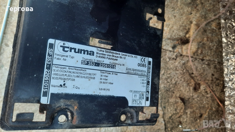 Газова печка TRUMA 3002 с ръчно пиезозапалване, профилактирана и чудесно работеща. Наличен електронен ключ за управление на вентилатор. Възможен тес и димонстрация на място. Цена 450 лв.