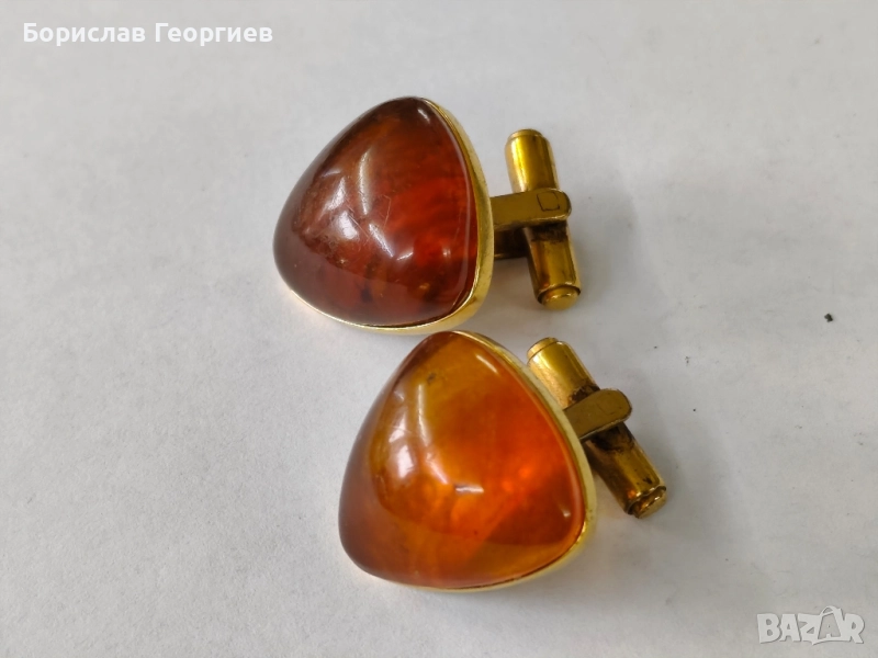 Руски позлатени ръкавели с кехлибар → Обява 52288478