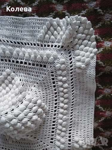 1. Плетена на 1 кука. Бяла, горна част. Размери 40 на 38 см. Подходяща за декоративна възглавница. Цена 15 лв. / 7,67 евро