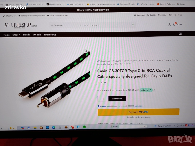 Коаксиален кабел Cayin CS-30TCR Type-C към RCA - 1m. Чисто нов.Подарък ми е и нямам какво да го правя. Обадете се ако ви трябва.